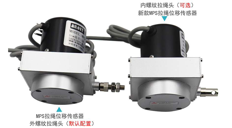 The range of MPS draw-wire displacement sensor is 100-50000 mm, including S-type (small, 100-2500 mm), M-type (medium, 500-7500 mm), L-type (large, 7000-15000 mm), XXS type (micro, 100-600 mm), XS type (micro, 100-1000 mm), XL type (super large, 15000-30000 mm). The output signals of the sensor are as follows: Resistance output (5K or 10K), voltage output (0-5V, 0-10V, three wire system or four wire system), current output (4-20mA, two wire system, three wire system or four wire system); 0-20mA, two-wire system, three wire system or four wire system), pulse output (AB phase or ABZ phase pulse square wave, differential signal output), RS485 digital signal output or absolute value coding output. The sensor has the advantages of small size, good stability, easy installation and use, and is widely used in the automation industry.