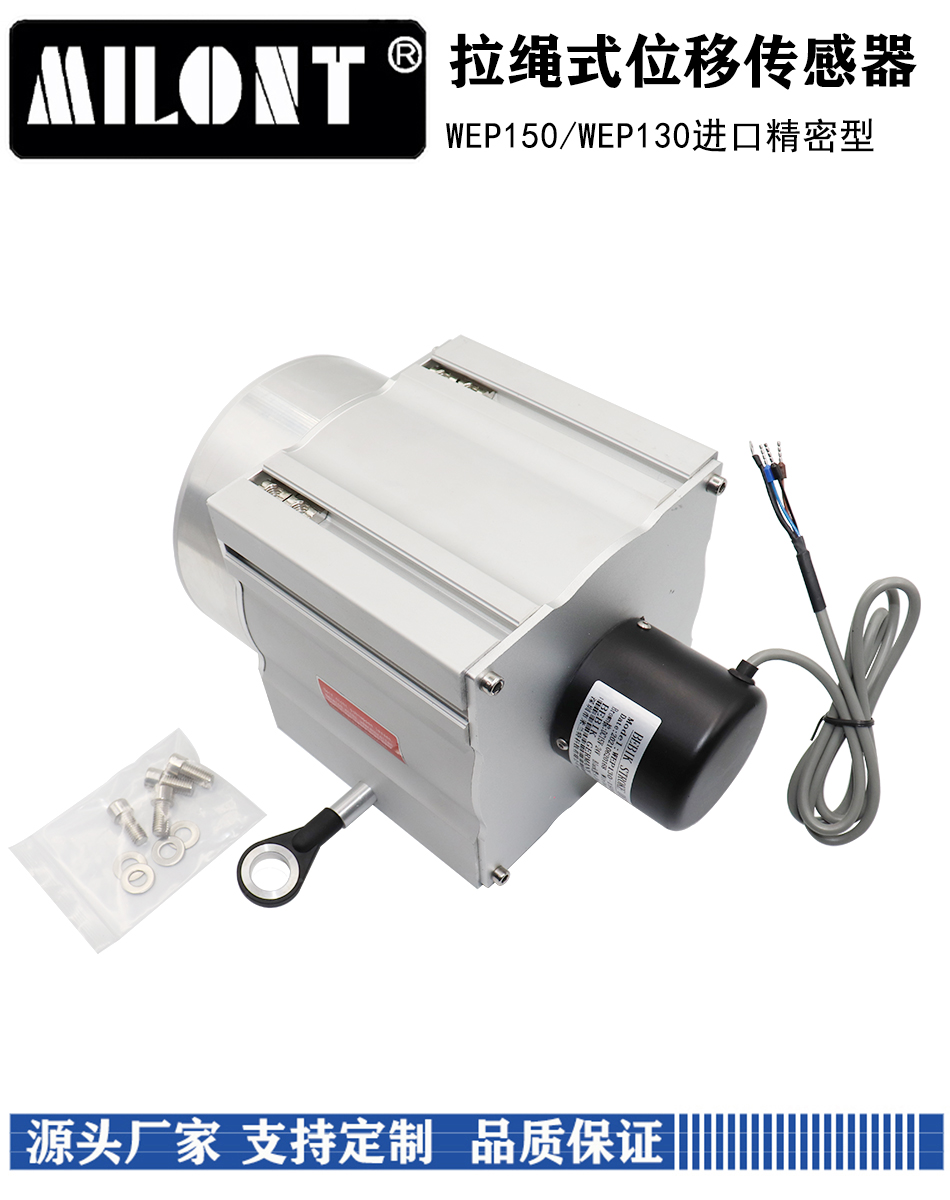 WEP系列拉繩式絕對(duì)值位移傳感器特別適合直線導(dǎo)軌系統(tǒng),液壓氣缸系統(tǒng)、試驗(yàn)機(jī)、伸縮系統(tǒng),倉儲(chǔ)位置定位,壓力機(jī)械,造紙機(jī)械,紡織機(jī)械,金屬板材機(jī)械,包裝機(jī)械,印刷機(jī)械,水平控制儀,建筑機(jī)械等相關(guān)尺寸測(cè)量和位置控制。拉線位移傳感器完全可以替代光柵尺,其它應(yīng)用場(chǎng)合可以定制,完全可以實(shí)現(xiàn)低成本的高精度測(cè)量 數(shù)值輸出型拉繩式位移傳感器可以選擇增量旋轉(zhuǎn)編碼器、絕對(duì)值編碼器等,輸出信號(hào)ABZ信號(hào)或RS485通訊,行程可以做到8米,線性精度大,分辨力高,根據(jù)配置不同。 模擬輸出型拉線位移傳感器可以選擇精密電位器、絕對(duì)值編碼器等,輸出信號(hào)可以為4-20毫安、0-5伏、1-5伏、0-10伏串行SS!和電阻信號(hào)等,行程可以達(dá)到20000mm,使用環(huán)境等級(jí)可以達(dá)到IP67的防護(hù)等級(jí),-45℃~+105℃的寬溫度環(huán)境下使用。
