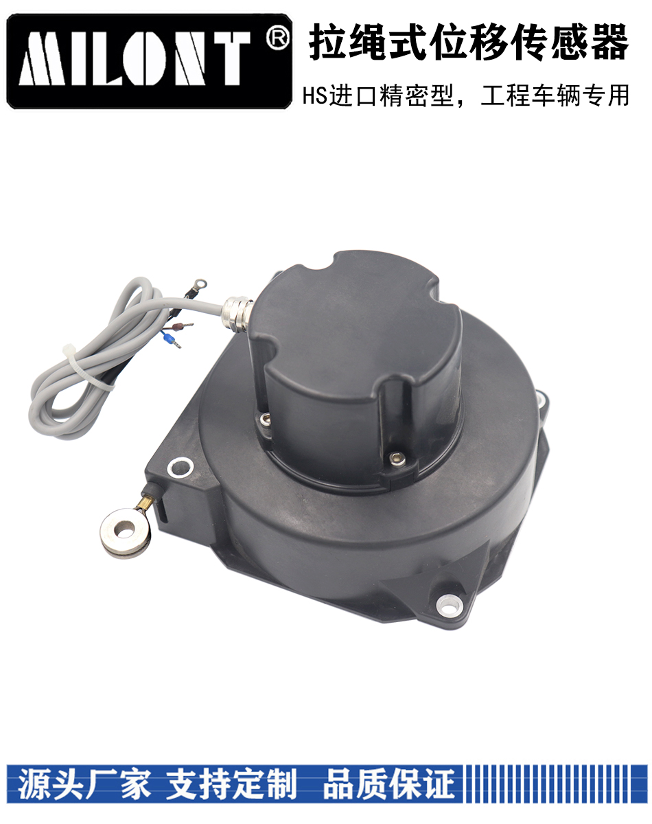 HS拉繩位移傳感器采用加粗拉繩(1.5mm與1.2mm),抗沖擊性能與耐磨性能較好,適用于吊車、水泥車、垃圾車等特種車輛位移測量與位置定位。